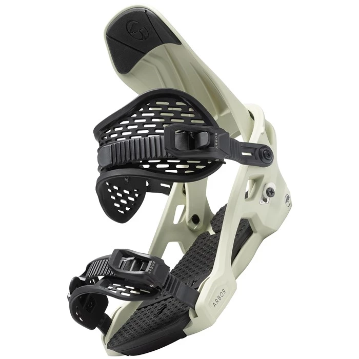 Arbor’s patented “Bow-Strap” adjuster and ladder strap swings out of the way quickly and easily, making binding entry a simple, user-friendly experience. The pre-curved strap steers clear of your boot while maintaining form and durability in even the coldest conditions.
